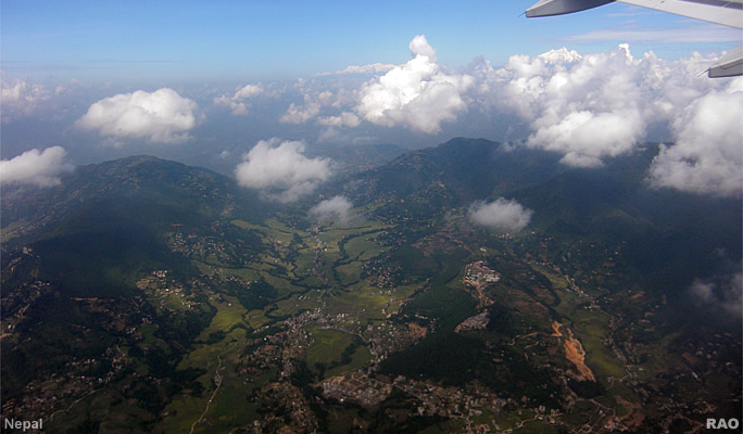 Druk Air flight over the Himalayas from Paro (Bhutan) to Kathmandu (Nepal)