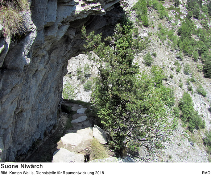 Im Rahmen der Gesamtrevision des kantonalen Richtplans wurde das Suoneninventar überprüft und überarbeitet. Die Suonen (Wasserleiten) wurden dabei neu vermessen und kartografiert. Das nachgeführte Inventar zeigt, dass die Anzahl der betriebenen Suonen im 20. Jahrhundert abgenommen hat und heute noch ungefähr 190 wasserführende Suonen mit einer Länge von mehr als einem Kilometer existieren. Diese gilt es als zentrales Element des Walliser Kulturguts auch zukünftig zu unterhalten und zu bewahren.