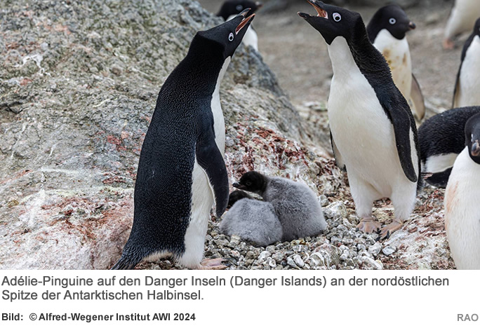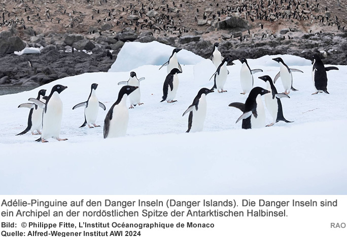 Die Danger Islands, ein Archipel an der nordöstlichen Spitze der Antarktischen Halbinsel, bestehen aus sieben Inseln mit einer Gesamtfläche von rund 4,5 Quadratkilometern. Trotz ihrer geringen Grösse sind die Inseln eine Brutstätte einer artenreichen Seevogelgemeinschaft und beherbergen die grösste Population des Adéliepinguins der gesamten Antarktischen Halbinsel, mit über 750'000 Brutpaaren. Der Adéliepinguin kommtss wie der Kaiserpinguinss am weitesten südlich vor und ist somit ein echter Antarktis-Spezialist. Adéliepinguine ernähren sich überwiegend von Krill, kleinen Leuchtgarnelen, die in antarktischen Meeresgewässern massenhaft vorkommen und die Basis des antarktischen marinen Nahrungsnetzes bilden. Die Antarktische Halbinsel ist im Vergleich zur übrigen Antarktis am stärksten von der Klimaerwärmung betroffen, gleichzeitig gilt sie als Hotspot der Biodiversität, unter anderem brütet dort ein Grossteil der in der Antarktis heimischen Seevögel.