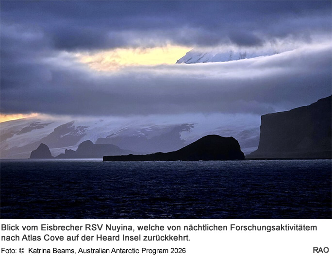 Das australische Antarktisprogramm ist auf den Weltkulturerbe-Heard Island und McDonald-Inseln eingetroffen und hat die erste Runde der Feldaktivitäten an Land abgeschlossen. Das Meeresforschungsprogramm ist ebenfalls im Gange und sammelt wichtige Daten.