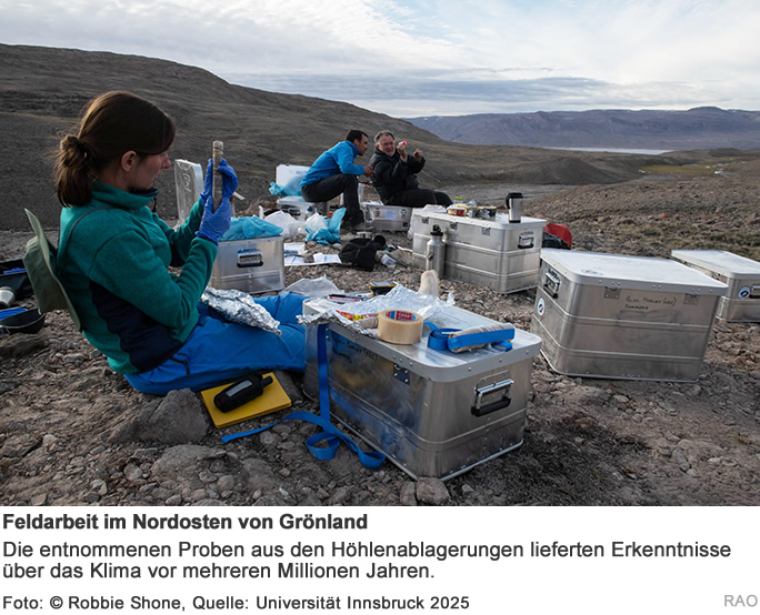 In einer abgelegenen Höhle im Norden Grönlands hat ein Forschungsteam um die Geologinnen Gina Moseley, Gabriella Koltai und der Geologe Jonathan Baker von der Universität Innsbruck spuren einer deutlich wärmeren Arktis entdeckt.