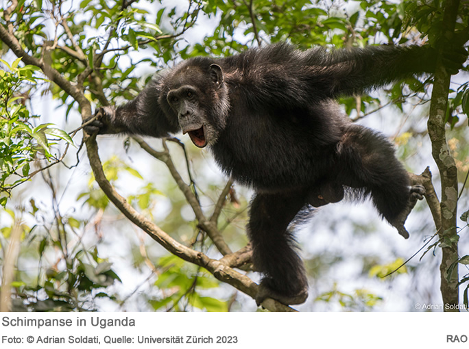 Auch unsere nächsten Verwandten, die Schimpansen produzieren verschiedene Laute und kombinieren sie unter bestimmten sozialen Umständen zu längeren Sequenzen. Forschende der Universität Zürich haben nun in kontrollierten Experimenten mit wilden Schimpansen in Uganda gezeigt, dass auch unsere nächsten Verwandten Bedeutung aus einzelnen kombinierten Rufen abzuleiten scheinen und deren Sinn verstehen.