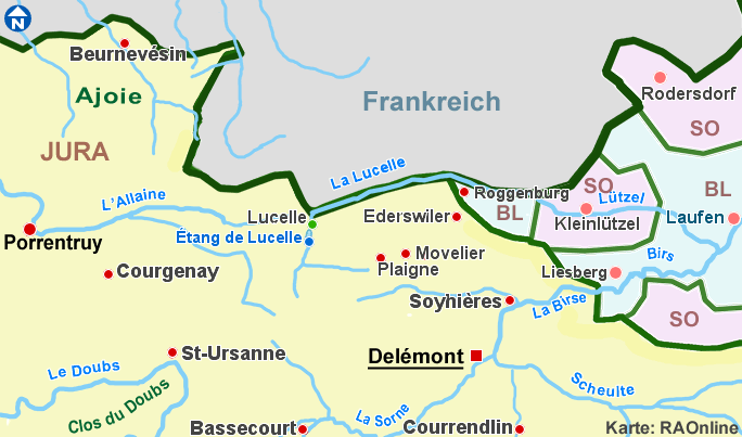 Die Landesgrenze zwischen Frankreich und der Schweiz wurden 1815 beim Wiener Kongress rechtsgültig festgelegt. Der 1815 festgelegte Grenzverlauf bekräftigte die Grenzvereinbarung von 1757 zwischen dem Fürstbistum Basel und Frankreich. Damals wurde die Grenze zwischen den beiden Hoheitsgebieten über die südliche Klostermauer der Abbaye de Lucelle (Kloster Lützel) gelegt.