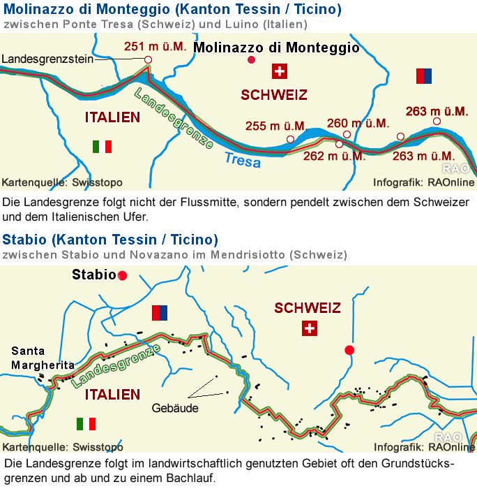 | Schweizer Landesgrenzen mit besonderem Verlauf |