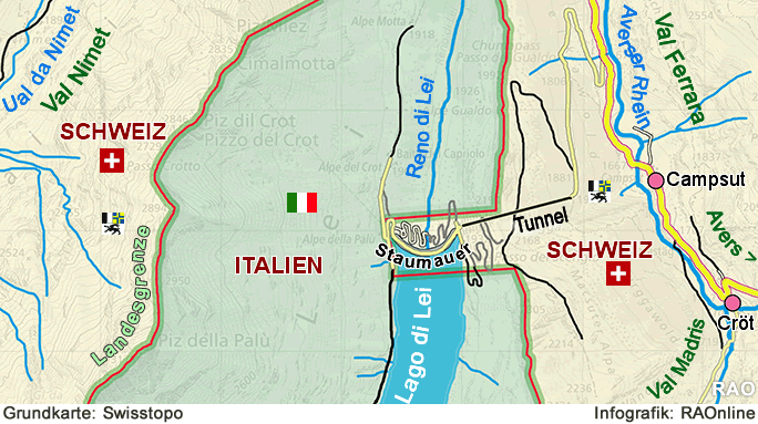 Lago di Lei: Die Staumauer liegt auf Schweizer Staatsgebiet
