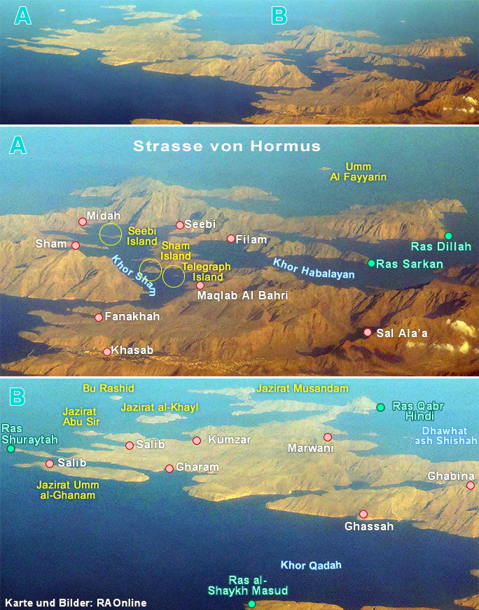 Die Fährschiffe nutzen für ihre Fahrten den zum Sultanat von Oman gehörenden Küstenabschnitt entlang der Strasse von Hormus. Die Boote verkehren ausserhalb des Fahrstreifens, welche durch internationale Schifffahrt beansprucht wird. Die Meerenge von Hormus ist von grosser strategischer Bedeutung für die Golfstaaten, den Iran udn die Weltmächte.
