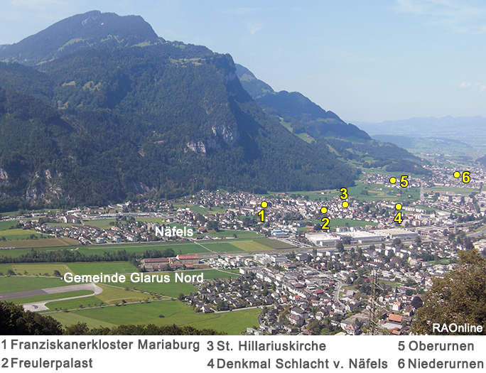 1388 besiegten die Glarner am 9. April mit Unterstützung der Eidgenossen das habsburgische Heerin der Schlacht von Näfels. An diesem für den Glarus historische wichtigen Datum zelebrieren die Glarner jedes Jahr die Näfelser Fahrt.