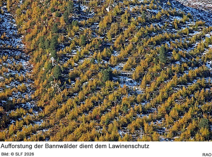 Gemessen an seiner Fläche ist Wald das wichtigste Element des Lawinenschutzes, das günstigste und ein natürlich nachwachsendes. Es ist eine Erkenntnis aus dem Winter 1951, als über 1'000 Lawinen immense Schäden anrichteten. Das SLF begann zu forschen, wie sich Schutzwald nachhaltig entwickeln kann.