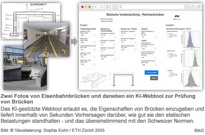 Forschende der ETH Zürich entwickeln in Zusammenarbeit mit den Schweizerischen Bundesbahnen SBB neue Vorhersagemodelle unter Einsatz von Algorithmen des maschinellen Lernens, um die Lebensdauer bestehender Eisenbahnbrücken zu verlängern und Ressourcen zu schonen. Ein KI-Assistent unterstützt Bauingenieure zudem beim Entwurf neuer Brücken.