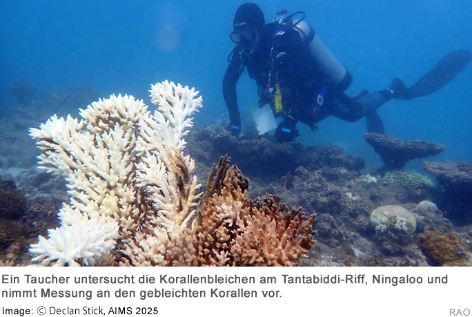 Die Meereswärmewelle 2024/25, die den Korallenriffen vor der westaustralischen Küste Hitzestress brachte, war die längste, grösste und intensivste seit Beginn der Aufzeichnungen in Australien, was zu dem am weitesten verbreiteten Korallenbleichereignis führte, das jemals für Westaustralien aufgezeichnet wurde, sagen Wissenschaftler und Manager.