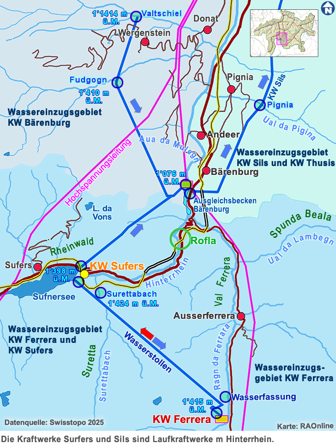 Die Kraftwerke Fererra, Sufers, Bärenburg und Thusis gehören der Kraftwerke Hinterrhein AG mit Sitz in Thusis.