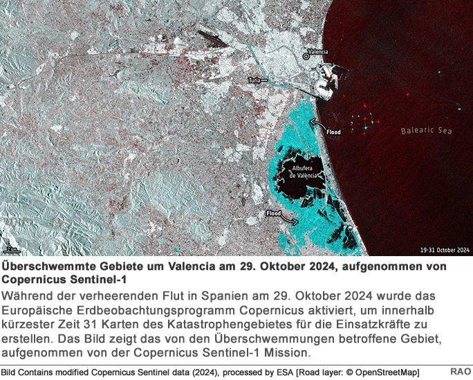 Copernicus - das europäische Erdbeobachtungsprogramm Copernicus ist ein Erdbeobachtungsprogramm der Europäischen Union (EU), das sie in Partnerschaft mit der Europäischen Weltraumorganisation (ESA) umsetzt. Es dient der Sammlung und Auswertung von Fernerkundungsdaten der Erde. Die Daten werden von Behörden, Unternehmen, der Wissenschaft und interessierten Bürgern genutzt. Speziell für Copernicus wurden bislang sechs Satellitenfamilien entwickelt, die sogenannten Sentinels ("Wächtern"), welche den Zustand von Erde und Atmosphäre erfassen und somit wichtige Daten zu Klimaschutz, nachhaltiger Entwicklung, humanitärer Hilfe und ziviler Sicherheit liefern. Ergänzt werden die Satelliten-Daten durch Messgeräte am Boden, in der Luft und in Gewässern. Den Betrieb der insgesamt 20 Umweltsatelliten übernehmen die Europäische Weltraumorganisation ESA und die Europäische Organisation für die Nutzung meteorologischer Satelliten, EUMETSAT. In Deutschland ist das Bundesministerium für Verkehr und digitale Infrastruktur (BMVI) federführend für Copernicus verantwortlich. Das DLR Raumfahrtmanagement in Bonn begleitet die Implementierung des Programms in Deutschland.