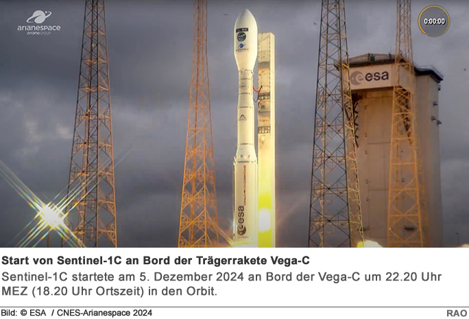Der Start des dritten Copernicus-Sentinel-1 Satelliten erfolgte heute mit einer Vega-C Rakete vom europäischen Weltraumbahnhof in Französisch-Guayana. Sentinel-1C setzt das Erbe seiner Vorgänger und liefert hochauflösende Radarbilder zur Überwachung der sich verändernden Umwelt der Erde, unterstützt eine Vielzahl von Anwendungen und fördert die wissenschaftliche Forschung. Darüber hinaus bietet Sentinel-1C neue Möglichkeiten zur Erkennung und Überwachung des Seeverkehrs.
