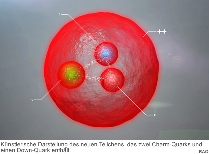 An der EPS-Konferenz für Hochenergiephysik in Venedig hat das LHCb-Experiment am Large Hadron Collider des CERN über die Beobachtung von ≡cc++ (Xicc++) berichtet, einem neuen Teilchen, das zwei Charm-Quarks und ein Aufwärtsquark enthält.