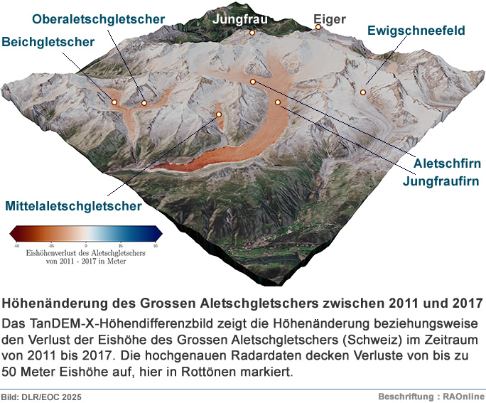 Das Abschmelzen von Gletschereis auf der ganzen Welt reduziert regionale Süsswasser-Ressourcen und lässt den globalen Meeresspiegel immer weiter ansteigen. Neue Erkenntnisse bringt eine Studie, die im Rahmen des Glacier Mass Balance Intercomparison Exercise, kurz GlaMBIE, durchgeführt und am 19. Februar 2025 in der Zeitschrift Nature veröffentlicht wurde. Unterstützt wurde diese vom Deutschen Zentrum für Luft- und Raumfahrt (DLR) und 34 weiteren internationalen Wissenschaftsteams.