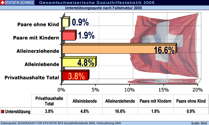 der gesamten Schweiz wurden 2005 rund 237'000 Personen mit Sozialhilfeleistungen