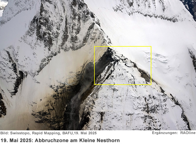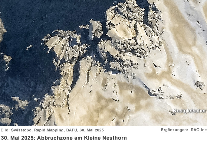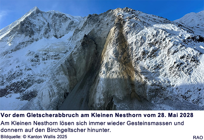 Seit Wochen und Tage zeigten sich oben am Kleinen Nesthorn über dem Beichgletscher und dem Nestgletscher Risse im Gestein. Viele Spalten blieben vorerst unter der Schneedeck verborgen. Die Felsstürze begannen sich zu häufen. Auch dem Kollaps des Beichgletschers blieb die Gipfelzone des Kleinen Nesthorn eine mit vielen Rissen durchzogene Region.