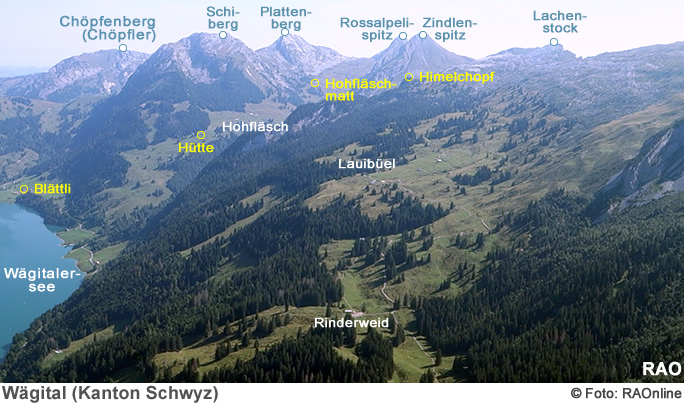 Das Wägital im Kanton Schwyz grenzt im Osten an den Kanton Glarus. ImOsten stossen das Glarner Niederurnen Tal, das Schwändital und das Oberseetal an das Schwyzer Wägital.