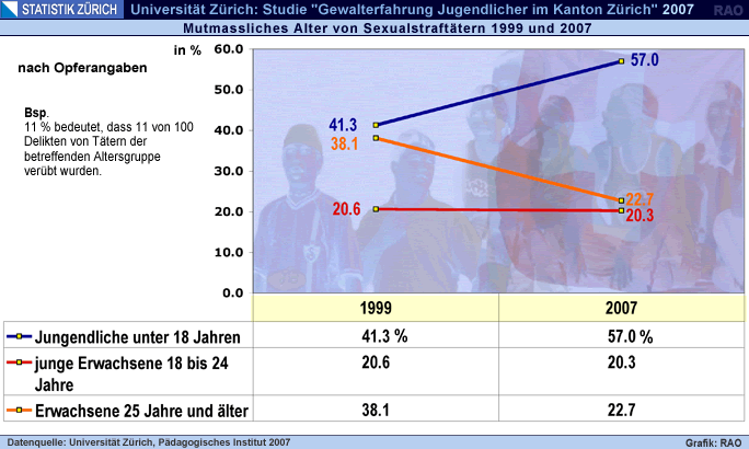 den Angaben der Opfer das geschätzte Durchschnittsalter von Sexualtätern
