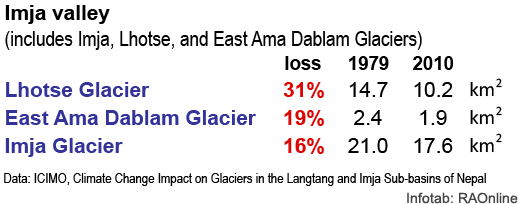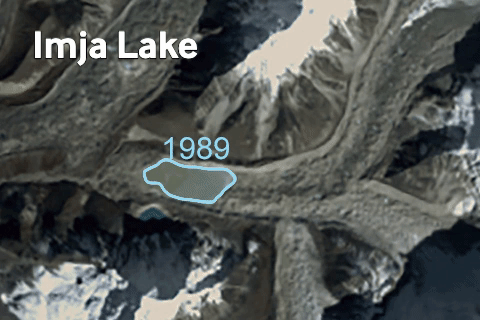 Lake Imja near Mount Everest in the Himalaya is a glacier lake that has grown to three times its length since 1990.