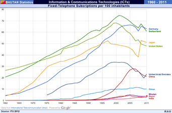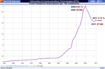 Bhutan: Fixed Telephone Subscriptions 1960 - 2011