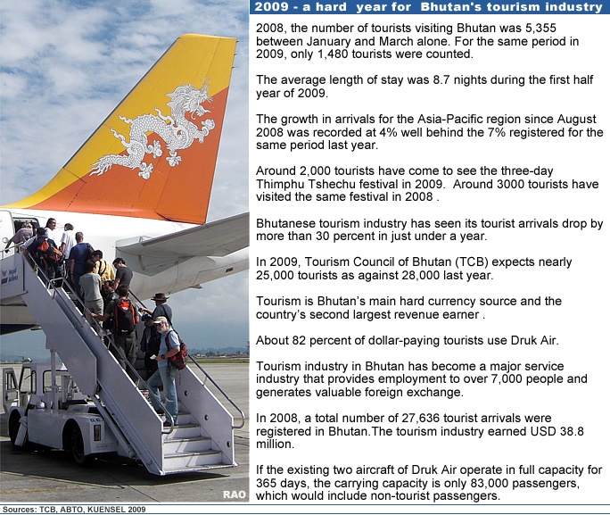 The tourism council of Bhutan (TCB) had expected at least 25,000 tourists last year, compared to almost 28,000 in 2008, said TCB officials. |