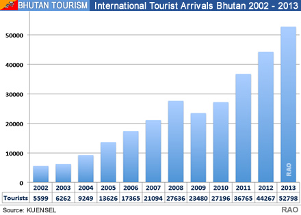 Japanese tourists surpassing American tourists in 2012 was mainly attributed to Their Majesties' visit to Japan in 2011, which generated "enormous" publicity, followed by Tourism Council of Bhutan's (TCB) follow-up promotions in Japan.