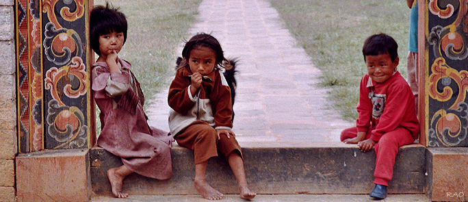 Children near Khansum Yeley Namgyal Choeten - Punakha