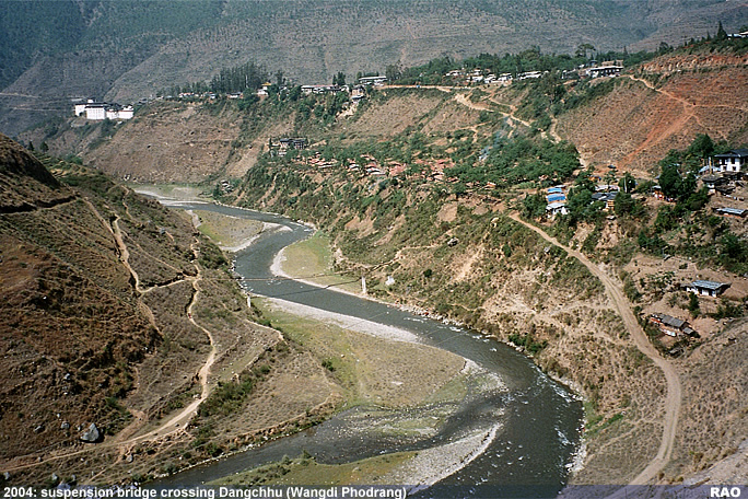 2004: suspension bridge crossing Dangchhu near Wangdi Phodrang