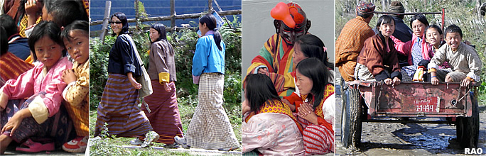 the traditional Bhutanese dress for women, cut at the waist, has literally