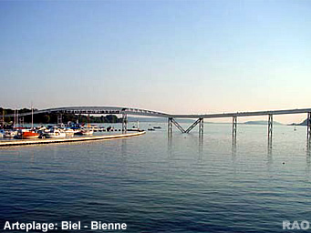 Auf der grosszügig neu gestalteten Bahnhofstrasse gelangen Fussgänger zum "Canal oriental". Dieser weist in Richtung See und damit zum Eingang der Arteplage beim unübersehbaren Eisstadion "La patinoire". |