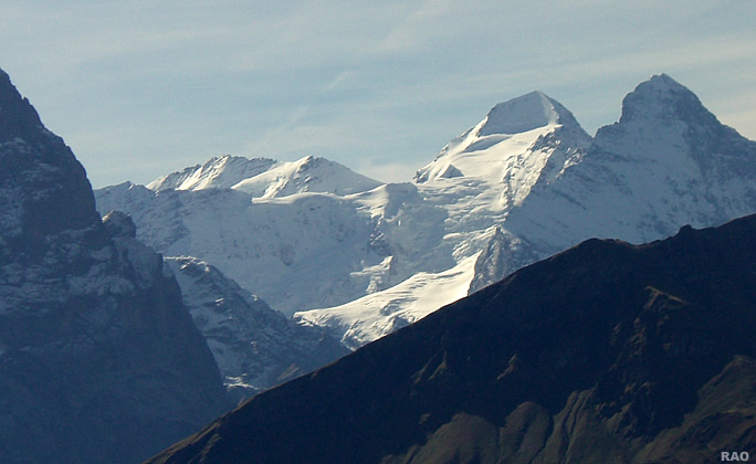 Berner Oberland: Mönch mit Fieschergletscher und Eiger (rechts)