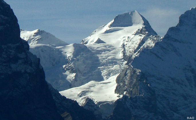 Berner Oberland: Mönch mit Fieschergletscher und Eiger (rechts)