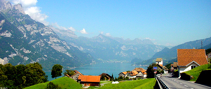 Walensee (St. Gallen) mit Churfirsten (2205 m) - View , Aufnahmeort: Obstalden (Glarus)