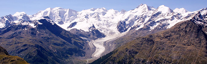 Morteratschgletscher und Bernina-Gruppe, Oberengadin (Graubünden)