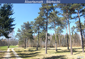 Nach rund 100 m Metern treffen wir auf einen Waldweg, der uns in südliche Richtung zum Pt. 603 am Rande einer mit Föhren bewachsenen Lichtung leitet. Wir durchqueren die Lichtung, biegen nach links ab und wandern rund 200 m bergwärts, wo wir auf den normalen Wanderweg treffen. Der Weg talwärts führt zum Weiler Chästel (Kästhal).