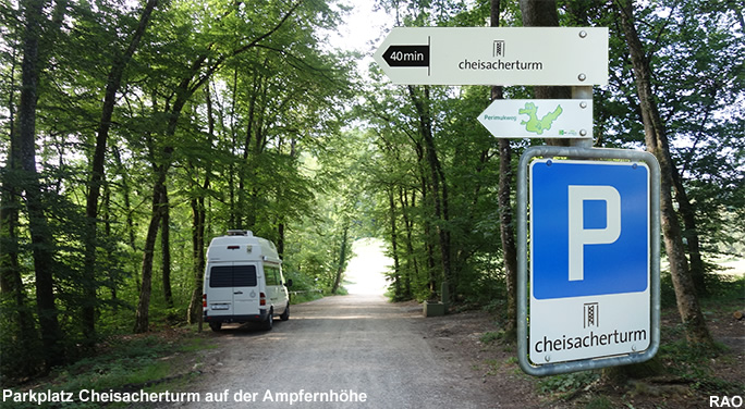 | Der 4,5 km lange, nicht kinderwagentaugliche Perimukweg Cheisacher richtet sich vor allem an Kinder. Der Jurasaurier Perimuk führt sein Publikum mit 17 Bildtafeln auf eine Zeitreise. Der Perimukweg beginnt und endet beim Parkplatz Ampfernhöhe. Zahlreiche Feuerstellen auf den verschiedene Rastplätzen verlocken zum Verweilen. Für den Perimukweg muss eine Marschzeit von ca. 2 Std. eingerechnet werden. |