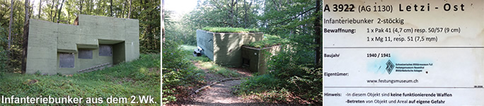 Die Hochfläche auf dem Bözberg wird forstwirtschaftlich rege genutzt. Zahlreiche heute unbenutzte Bunker zeugen von der ehemals wichtigen militärischen Bedeutung der Region.