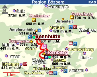 Für die Wanderung vom Parkplatz Homberg aus zu den Sennhütten (634 m ü. M.) mit der Sennhütte-Besenbeiz gibt es zwei Varianten: