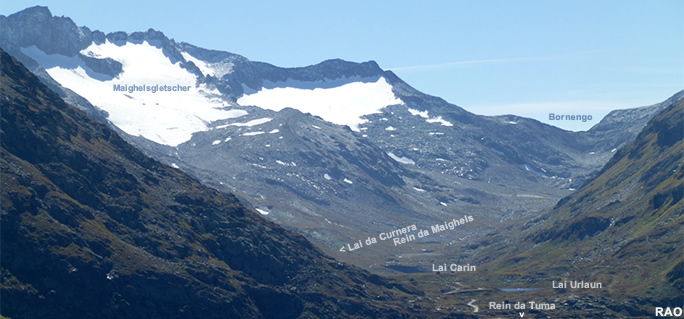 vor uns liegende baumlose Val Maighels dient der Schweizer Armee als Schiessplatz