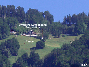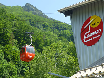 Luftseilbahn auf den Urmiberg benutzt 4er-Kabinen. An schönen Tagen