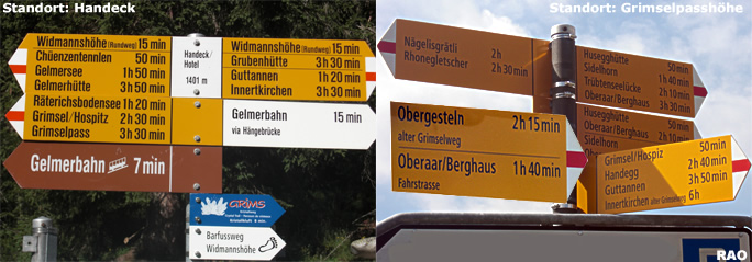 Marschzeiten ab Handeck und Grimsel Passhöhe