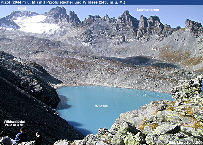 | Pizolhütte (2'227 m ü.M.) - Wangsersee - Wildseelücke (2'493 m ü.M.) - Wildsee (2'448 m ü.M.) - Pizolgipfel (2'844 m ü.M.) |