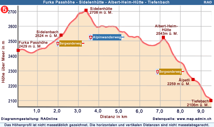 Furka Passhöhe - Sidelenhütte - Albert-Heim-Hütte - Tiefenbach