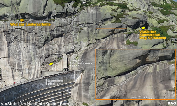 | Der Weg über die alte Spitallamm-Staumauer zur Lauteraarhütte wurde 2019 gesperrt. Der Weg erfolgt vorläufig über den Parkplatz Sommerloch am Fuss der Staumauer Seeuferegg. Die Gondeln der Luftseillbahn «Hospizbahn» verkehren bei Bedarf (Selbstbetrieb) zwischen dem Sommerloch und dem GrimselHospiz. |