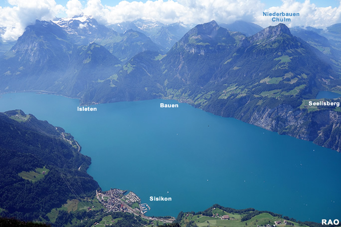 Urnersee Westufer mit Uri-Rotstock, Gitschen, Oberbauen Stock, Niederbauen Chulm, Urner Reussdelta usw. |