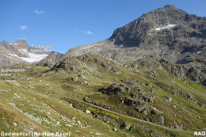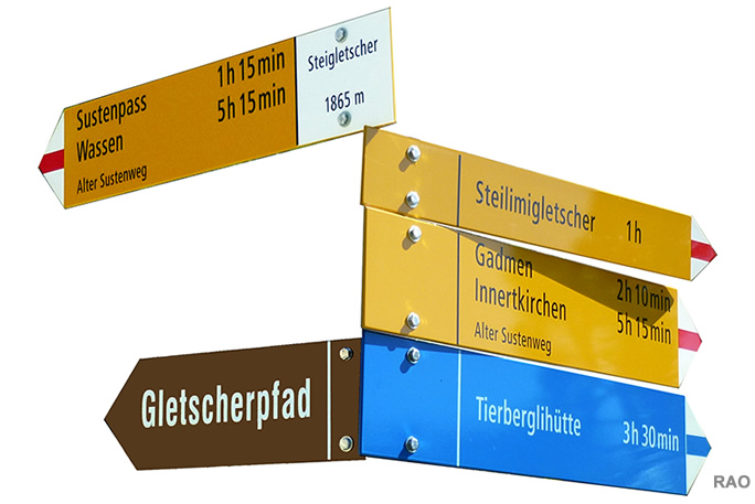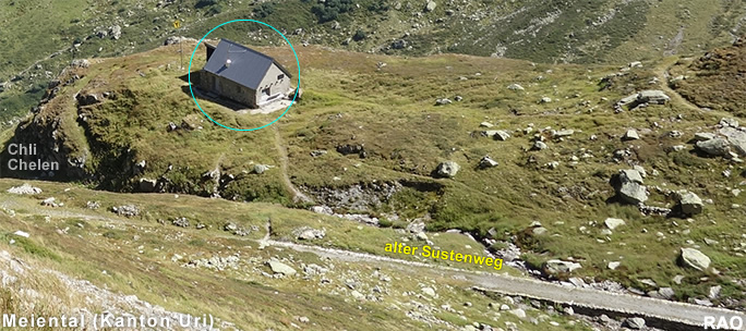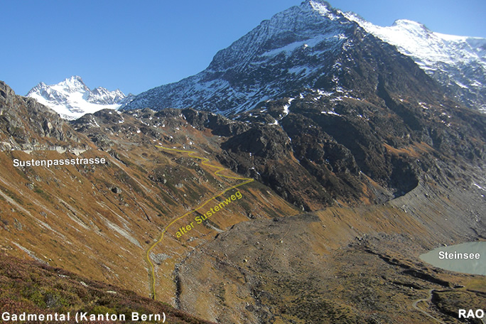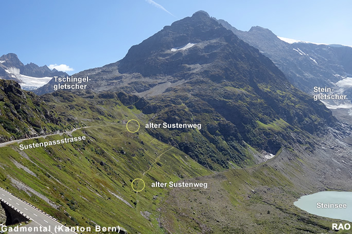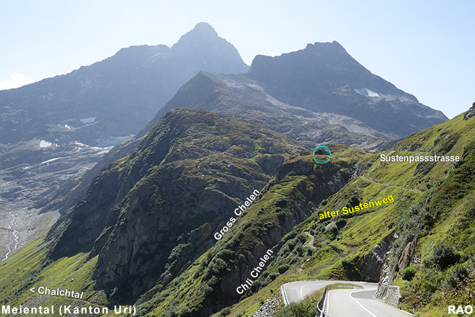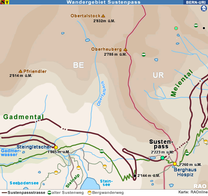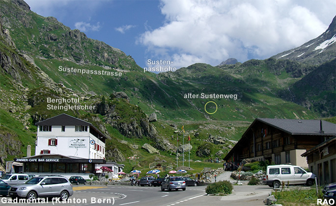 Susten Steingletscher, Susten Passhöhe, Meien Sustenbrügglie, Färningen, Meien Dörfli, Wassen Post, Göschenen Bahnhof |