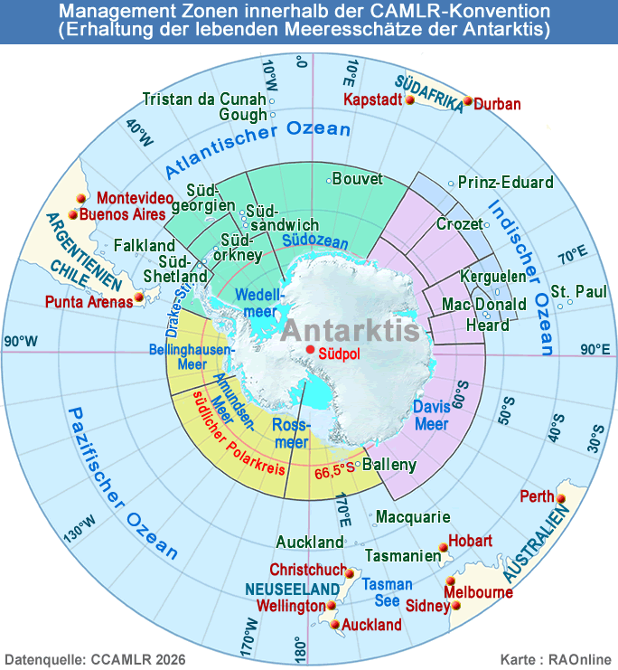 Die Einbindung dieses Konzepts in eine neue Managementstrategie soll in diesem Jahr bei CCAMLR diskutiert und umgesetzt werden - wenn sich alle Mitglieder darauf einigen können, denn Anträge werden nur im Konsens umgesetzt. Wie wichtig das ist, zeigen aktuelle Fangquoten: Antarktischer Krill wird fast ausschliesslich im atlantischen Sektor des Südlichen Ozeans (CCAMLR-Areal 48) gefischt.