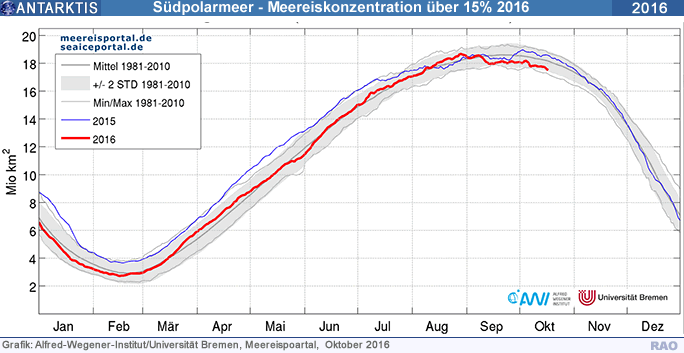 Antarktis: Südpolarmeer - Meereisausdehnung im September 2016