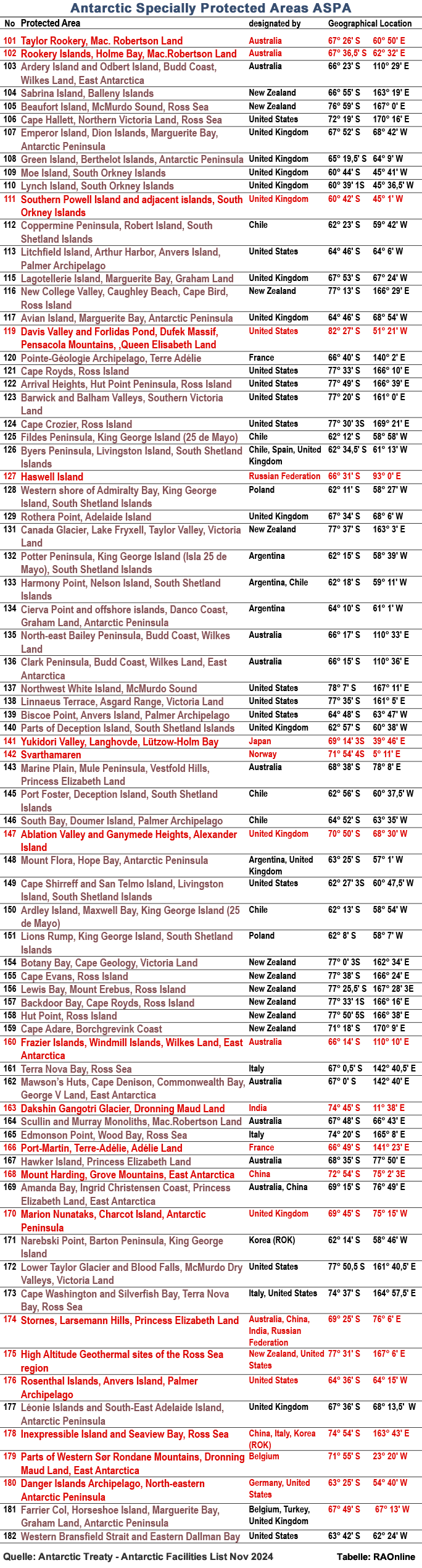 | Antarctic Specially Protected Areas ASPA |
